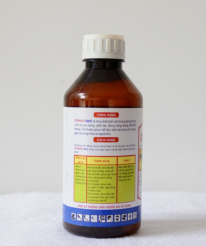 - Pha theo tỷ lệ khuyến cáo 20-25ml Cypado 25EC trong 1 lít nước sạch, lắc đều trước khi phun.